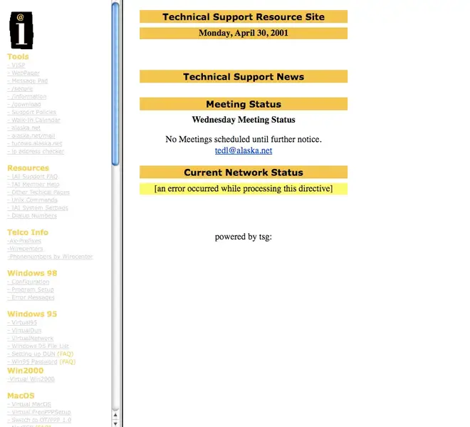 The Internet Alaska : Technical Support Group : Extranet Support Site for Technical, Customer and Network Support Representatives.