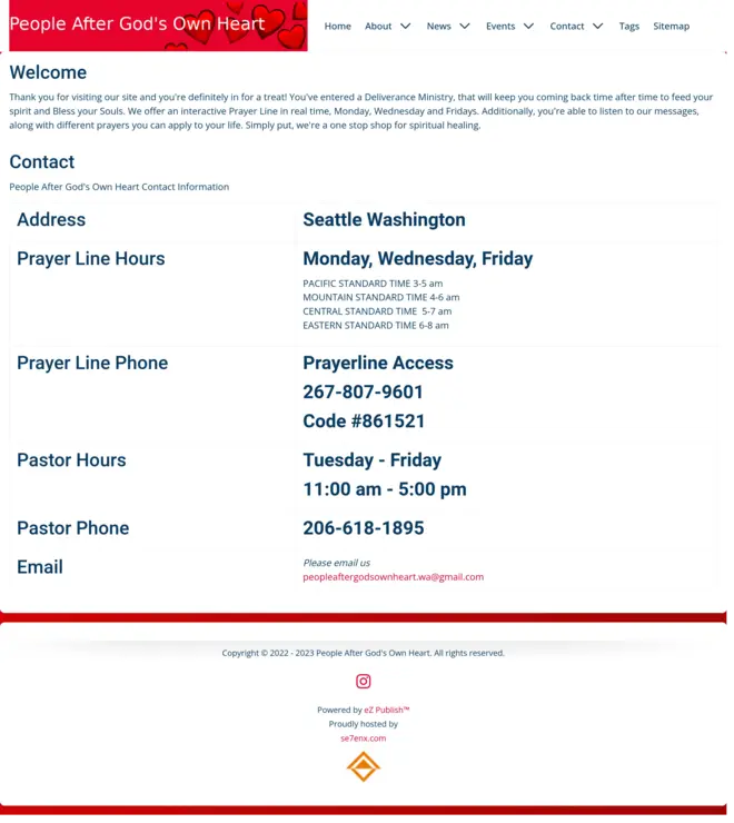 "People After God's Own Heart" is a non-profit business that provides the the prayer line for everyone. They are a small family run organization in Seattle, Washington.